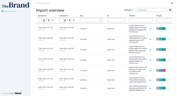 Use the blue download symbol situated right after the filename to download a copy of that specific import file. This is especially handy when the import had warnings or errors that you want to fix before offering the import again.